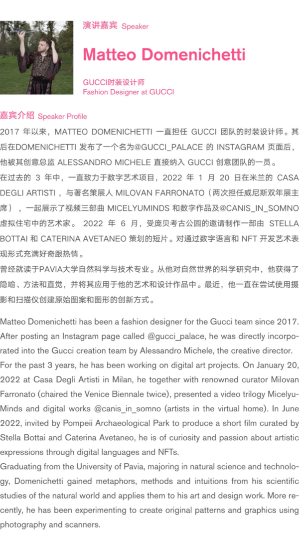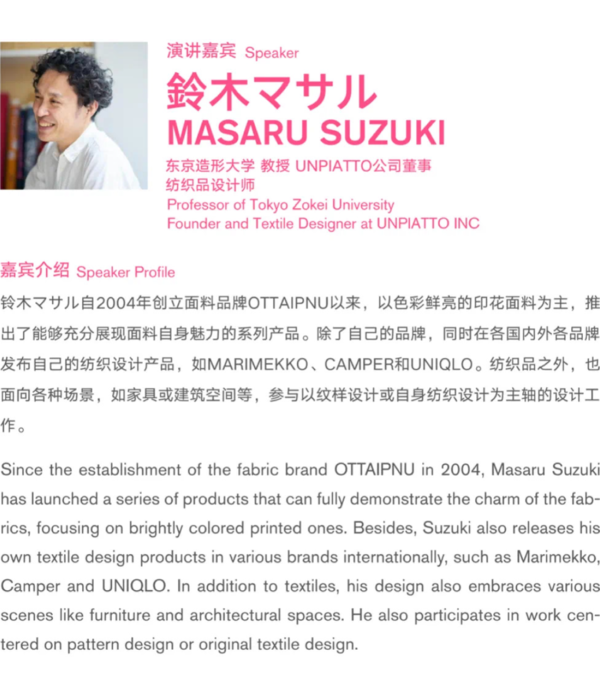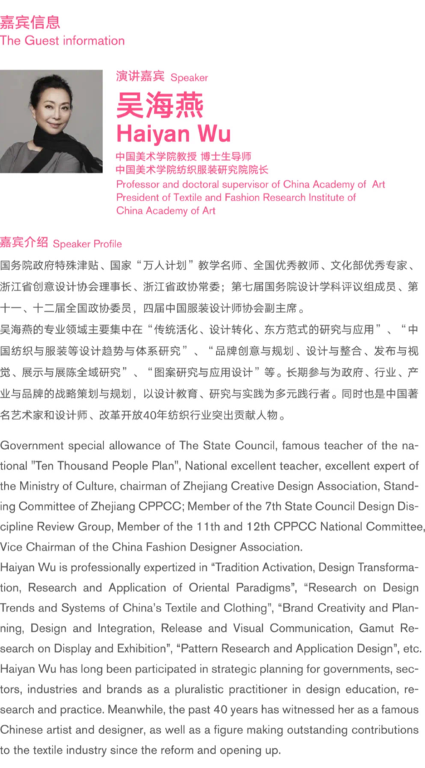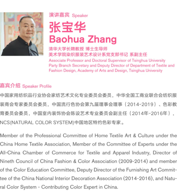 议题:纹样是文化艺术和生活的重要载体和精神标识,是样式化的视觉符号,是抽象提炼的形象,应用形式和载体。论坛通过以纹样为核心的交流和传播探讨纹样设计的价值和内涵,通过纹样感知世界,表达情境,感受生活,传达叙图温度。从东方审美和艺术哲学角度探讨纹样图式与时尚的文化精神,同时从设计教育入手解读纹样的设计思维和设计美学观念。打造从纹样角度勾连现代设计、传统文化、设计思维的专业学术交流,旨在推动国际学界和设计界对纹样的文化及形式的研究、交流、借鉴和活化,探讨纹样研究的意义。