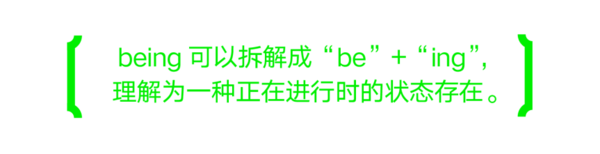 "Being"可以拆解成"be"+"ing",理解为一种正在进行时的状态存在。这种状态是动态、变化和发展中的不确定性,激发我们从不同维度去思考变的可能,去创造正在进行中的未来。