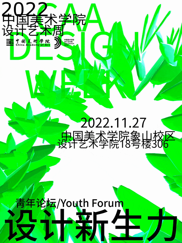 2022年11月27日,中国美术学院设计艺术周“新生力”青年论坛在中国美术学院象山校区设计艺术学院顺利举办。设计艺术学院院长毕学锋、党委副书记刘超群、中国美术学院研究生处副处长黄斌斌出席论坛并致辞。设计艺术学院优秀青年教师、超过120名同学报名参加线下论坛活动,同步的线上直播也吸引了不少观众参与。