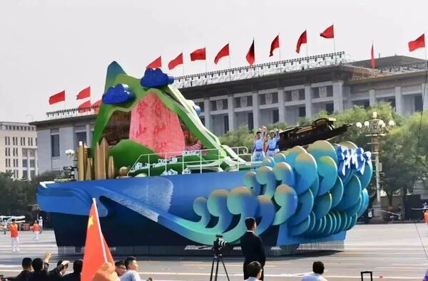 当彩车驶过天安门时,团队中的每一个人心潮澎湃。“作为设计新青年,我们将继续传承‘浙江精神’,肩负起新时代文化发展的新使命。”染服系研究生周倩说。