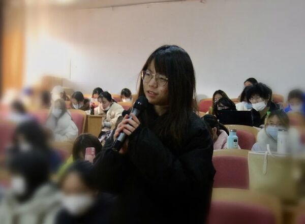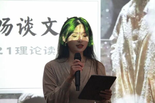 21级设计艺术学系学生周任童声情并茂地朗诵了朱光潜先生的《谈立志》,分享自己在阅读期间的体悟。“那件事的成功尽管在无限远的将来,而那件事的发动必须在一顷刻。”周任童同学以此为基点,向大家介绍了自己细致的大学规划,提出身为学生应当不断学习、合理规划、珍惜资源。