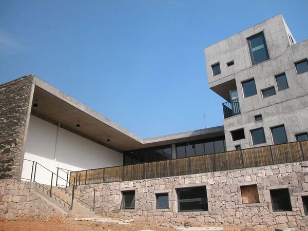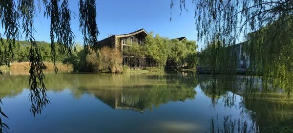 当王澍老师的指挥棒一停,砖瓦瓷片们也随即打住了,悄然凝结成了各种建筑。而那韵律就凝结在这些建筑之中,化为了比例与节奏,与远处象山、小河的韵律遥相呼应……说“建筑是凝固的音乐”,大抵如此吧。这些建筑宛如从这独特的气场中气化生成的一般,而这些循环再利用的旧砖、旧瓦、碎瓷片则让建筑一建成即带有几十年甚至上百年的历史与沧桑。