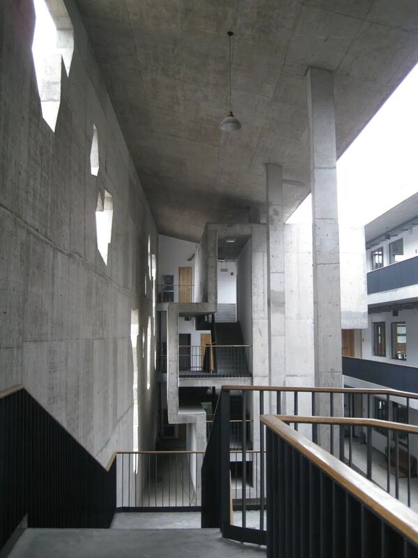 记得有一次很好玩,我沿着解构主义风格的天桥一路徐行,不经意间,已被卷入了12号楼里。连我自己也不知怎么地,就身在一座红砖砌造的——城中城、楼中楼,或者是什么“魔方城堡”的底部了。我在里面转来转去玩味了好久,好想有一个适当的距离拍照,却不成。