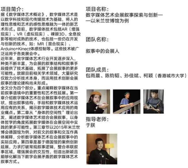 11月12日,2021年浙江省会展策划创意大赛落下帷幕,经过激烈角逐,我院综合设计系包雨晨、陈钧韬、孙佳斌、柯颖团队从400多支队伍中脱颖而出进入决赛,并荣获一等奖。