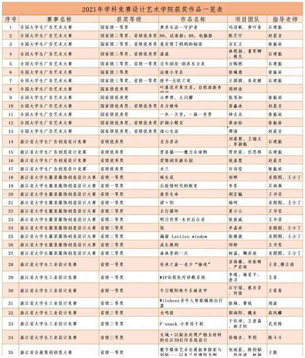 第十三届浙江省大学生工业设计竞赛中荣获主体赛一等奖2项,二等奖1项,三等奖3项,专项赛一等奖1项