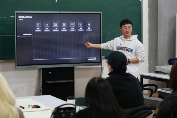 本次课程总共有四个小组,研究方向分别为关于医疗、交通、物业、餐饮方案的智能化评估。通过对数字化与数智化理论案例的学习,了解用户体验分析后,各小组针对各自的选择方向进行了最终方案的汇报。同学们在用头脑风暴和能力卡片计算出方案的智能化改造性价比,呈现优秀的方案。