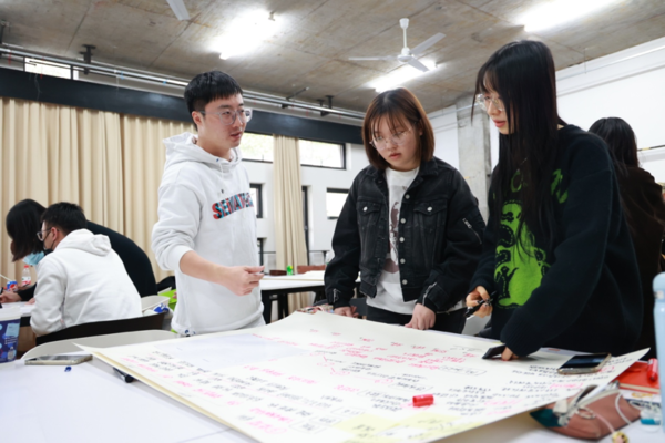 随后,来自布鲁可不同部门的设计师指导同学们进行头脑风暴与概念表达,与各组同学在初始阶段一同思考如何突破模糊的想法,并给同学们使用素材时的实用意见。