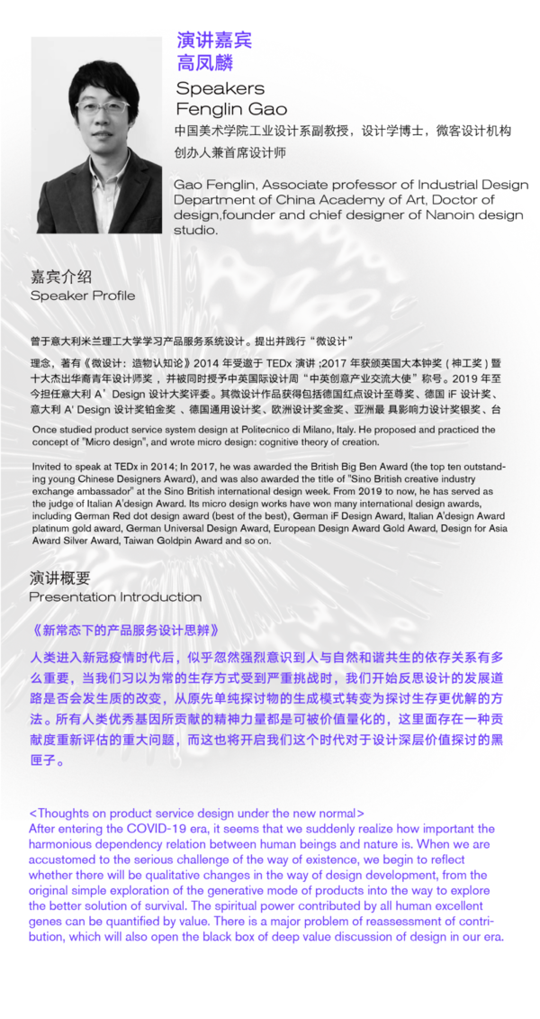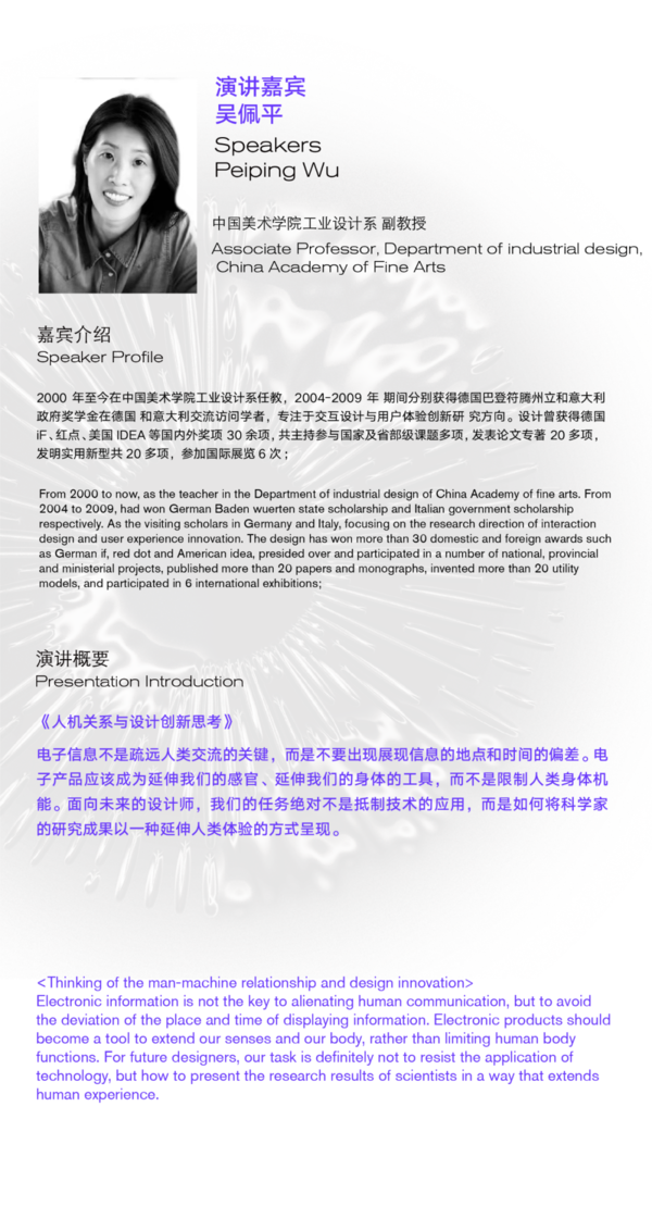 demands and expectations for the cultivation of innovative talents and different forms of cooperation in current situation. And through the communication with all parties of conference industry, creators and researchers, students are encouraged to open up practical channels, discuss speculative design methods, and understand driving the landing of feasible products as the role of innovative designer to meet global trends and challenges.
