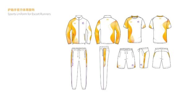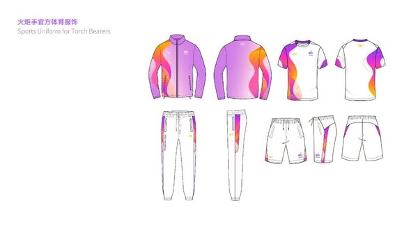 杭州亚运会官方体育服饰包括:火炬手官方体育服饰、护跑手官方体育服饰、赛会志愿者官方体育服饰、技术官员官方体育服饰、安保人员官方体育服饰、技术官员正装服饰、场馆化运行团队/OCA(亚奥理事会)大家庭官方体育服饰、OCA(亚奥理事会)大家庭正装服饰。