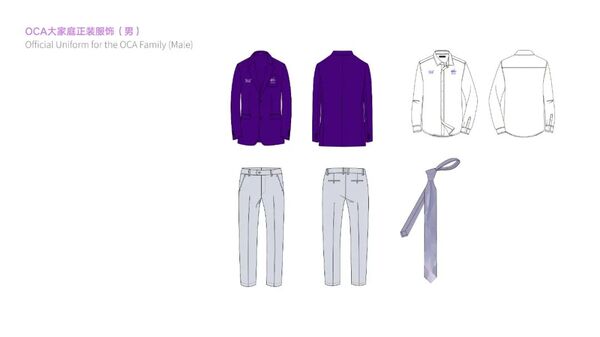 升旗手服装色彩来源于亚运色彩“月桂黄、水墨白”,上下皆白,配以橘黄、浅黄象征丰收景象渐变色的领带点缀;造型采用青年休闲西装款式。