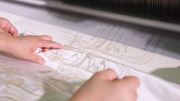 “在这个图案中,有十多种肌理效果,我们希望把传统织造的精髓,用现代高科技的织造工艺体现出来,因此花费了很大功夫。”