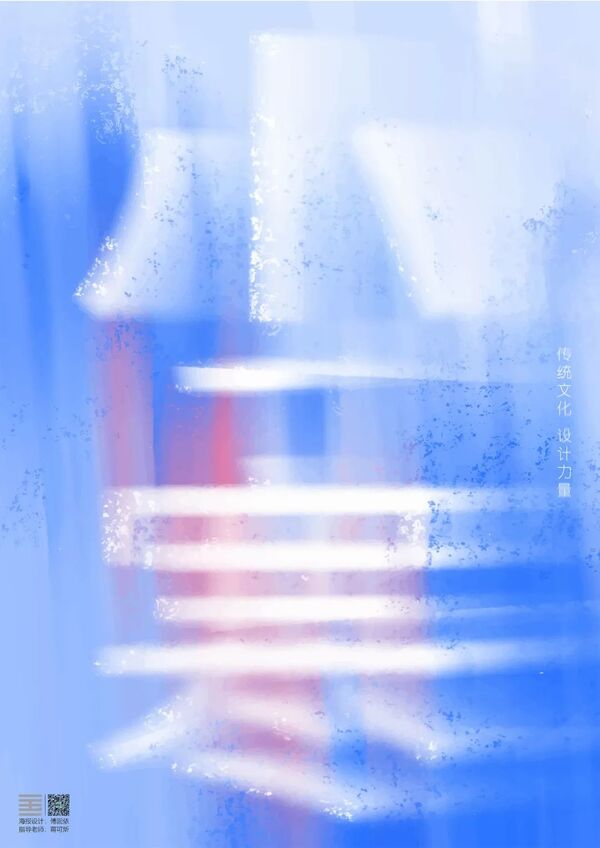 清冷的蓝白色调掺进一抹桃红,意指小寒前后桃花盛开,在寒冷的时节里给人们带来一丝生机。模糊磨砂的质感肌理,代表冬天呼出热气时那种朦胧的感觉,加之字体的动态模糊效果,体现微微寒风略过,少数的颗粒感营造下雪的氛围。