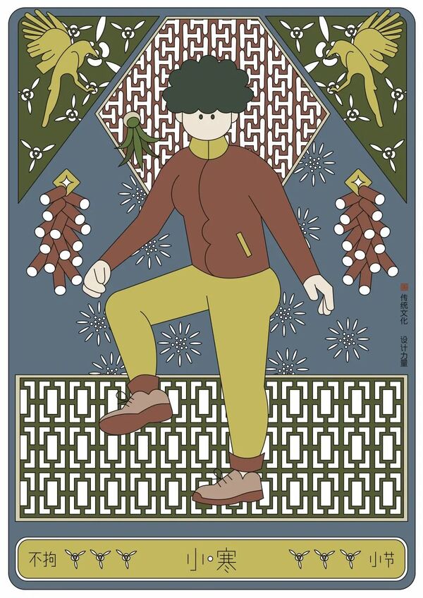 小寒,是二十四节气中的第23个节气,冬季的第5个节气,干支历子月的结束与丑月的起始。斗指子;太阳黄经为285°;于每年公历1月5-7日交节。冷气积久而寒,小寒是天气寒冷但还没有到极点的意思,它与大寒、小暑、大暑及处暑一样,都是表示气温冷暖变化的节气。小寒节气的特点就是寒冷,但是却还没有冷到极致。当古老的传统文化与极富创造性思维的设计相融合,会碰撞出怎样的火花呢?值此佳节之际,设计艺术学院的师生为我们带来了一份特殊的问候,共同创作了「小寒」系列海报。