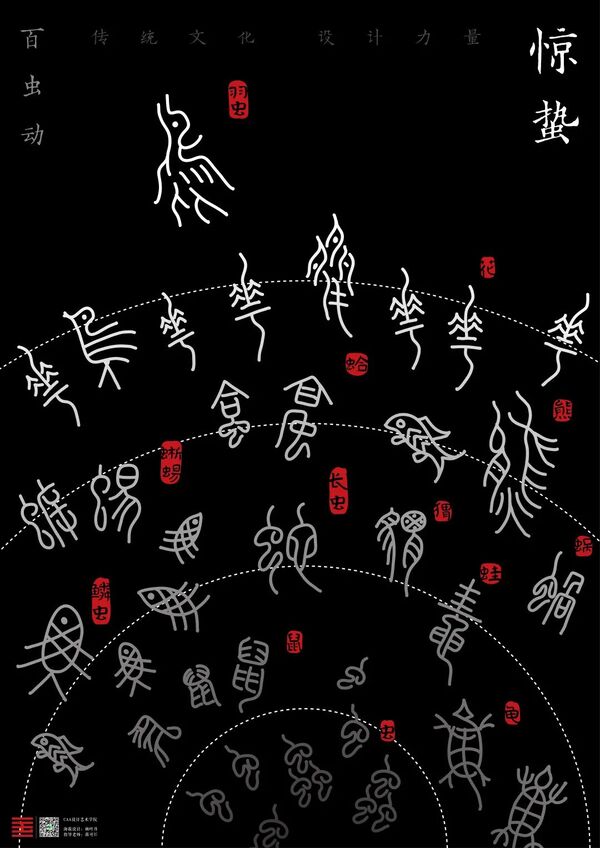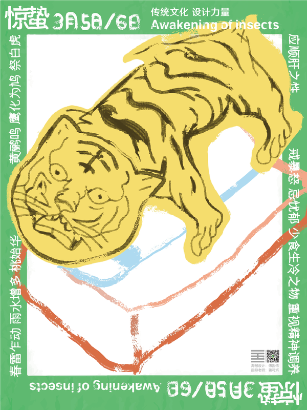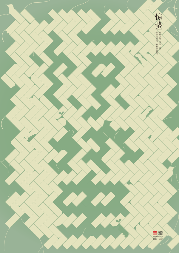 惊蛰,又名“启蛰”,是二十四节气中的第三个节气。斗指丁,太阳到达黄经345°,于公历3月5-6日交节。惊蛰反映的是自然生物受节律变化影响而出现萌发生长的现象。时至惊蛰,阳气上升、气温回暖、春雷乍动、雨水增多,万物生机盎然。农耕生产与大自然的节律息息相关,惊蛰节气在农耕上有着相当重要的意义,它是古代农耕文化对于自然节令的反映。当古老的传统文化与极富创造性思维的设计相融合,会碰撞出怎样的火花呢?值此春季,设计艺术学院的师生共同创作了「惊蛰」系列海报,为惊蛰时节增添了艺术气息。