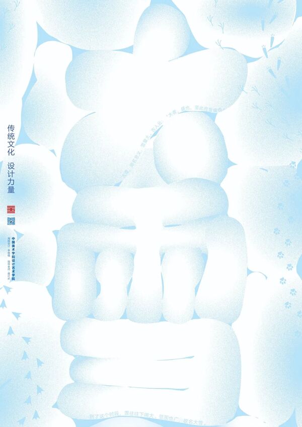 设计说明:古人云:“大者,盛也,至此而雪盛也”。大雪,顾名思义便是雪量大、降水充足,每到这个时段,雪往往下得大、范围也广。俗语里也有“小雪封地,大雪封河”的说法,海报便用积雪鼓起的形态创作字体,其间穿梭小动物的脚印表示一年即将临近尾声,万物也在为过冬忙碌储备。