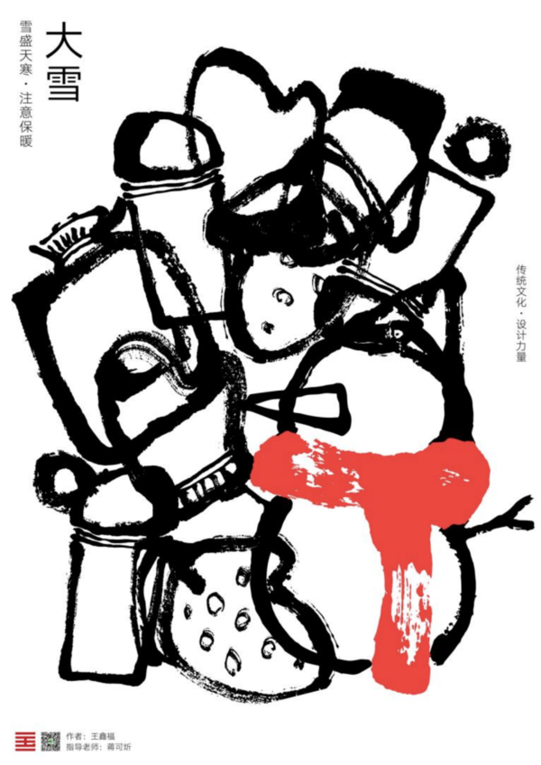 设计说明:大雪是二十四节气中的第21个节气,冬季的第三个节气,雪是浪漫的,也是很容易消失的,就像是海报中大雪两字一样飘渺。大雪是神秘的它会使美景陷入一片白茫茫之中…………