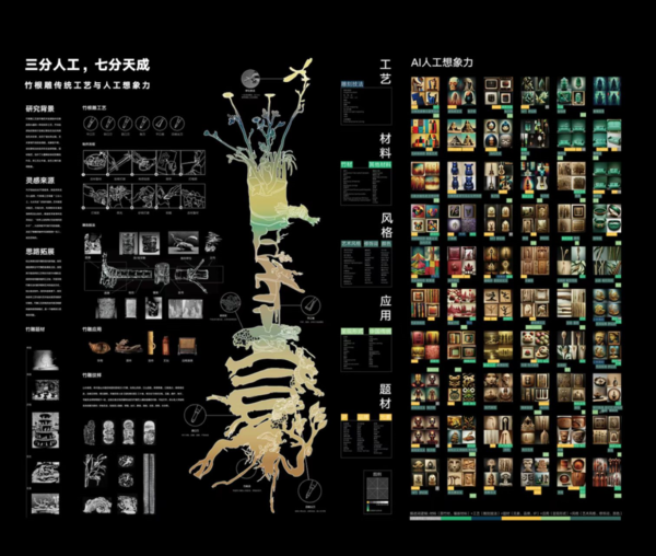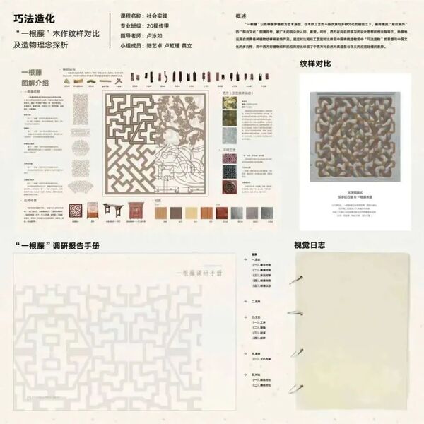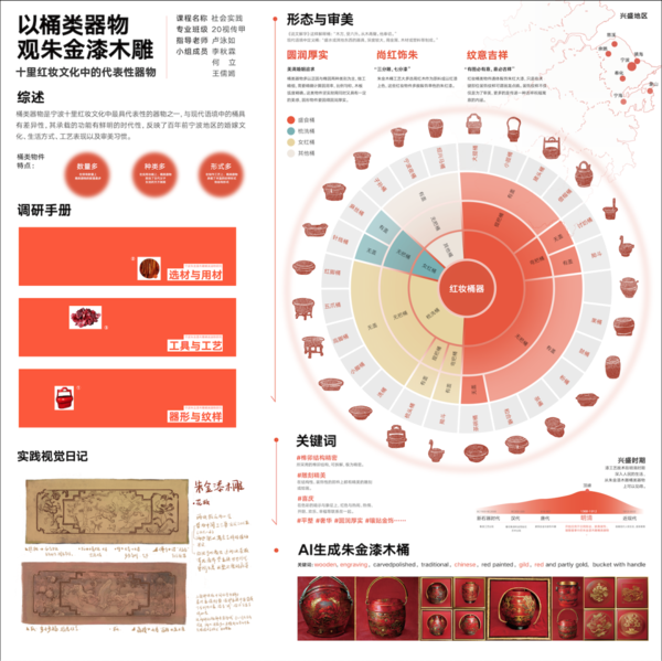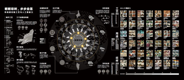 课程内容强调在地调研,配合桌面调研,结合用户和市场调研,落脚传统手工艺。着重将有限的三周时间用于实地考察、逻辑梳理与系统性研究。课程选题源自传统手工艺的市场困境。面对手工艺圈距现代生活较远、与年轻群体脱轨的困境。课程主旨在让学生能关注到该领域,学习使用人工智能技术进行设计探索,并上升至文化思考和保护,找到传统文化与现代生活的链接方式。
