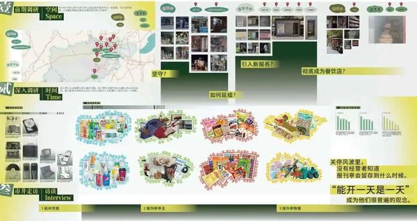 杭州的升级与进步似乎也在让这座城市失去一些温度, 我们走街串巷收集起那些散落在杭城的报刊亭记忆碎片,希望将这份独属于报刊亭的烟火气再现。在信息获取的主要渠道已经发生改变的今天,城市中的报刊亭应该何去何从?本小组以杭州市内的报刊亭现状为调研切入点,通过时间、空间与市民记忆三个维度展开调研,进 而探寻现代城市中报刊亭的安身之所。