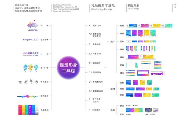 《杭州2022年亚运会、亚残运会形象景观总体规划》规划设计了一系列视觉形象、公共艺术、夜景营造 “工具包”,可被运用于城市重要节点与竞赛场馆、亚运村、官方酒店、火炬接力等场域。通过整体规划和科学统筹,确保整个杭州亚运会、亚残运会视觉形象氛围营造在规划的统一指导下同频共振。
