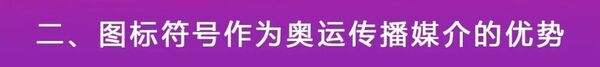 奥林匹克运动会在图标的发展过程中具有着特殊的意义,奥运会的体育图标也是图标符号在视觉识别国际化的首创。奥运会体育图标是奥运会重要的视觉形象元素之一,它以生动准确的运动造型表现奥运会的各种体育项目。作为通用图形的体育图标,它需要超越通过语言文字传播举办国文化的局限,将广泛应用于奥运会道路指示系统、场馆内外的标识和装饰、景观环境布置、广告宣传、电视转播、纪念品设计等领域。奥运会体育图标是构成一届奥运会景观的重要基础形象元素,它不仅具有很强的功能性,图标符号也鼓励着人们读取关注体育赛事,是传达奥运会举办理念和主办国文化的重要载体。
