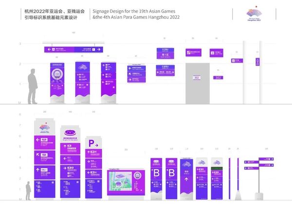 杭州亚运会、亚残运会引导标识系统基础元素重点围绕场馆侧进行设计,包括车辆交通标识、行人导向标识、功能区域标识、公共信息标识等。