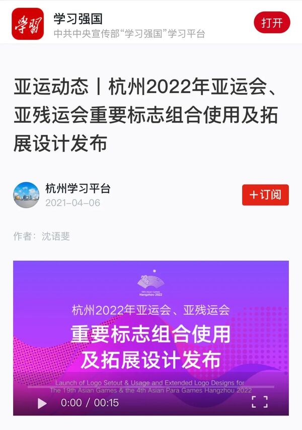 人民日报报道了杭州亚运会、亚残运会重要标志组合使用及拓展设计的发布。在中纪委网站上、学习强国平台中,也对设计的发布进行了报道。