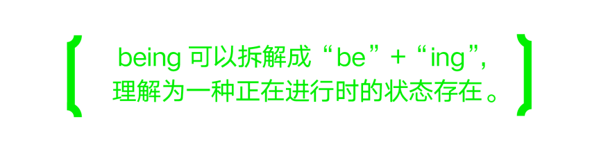 "Being"可以拆解成"be"+"ing",理解为一种正在进行时的状态存在。这种状态是动态、变化和发展中的不确定性,激发我们从不同维度去思考变的可能,去创造正在进行中的未来。
