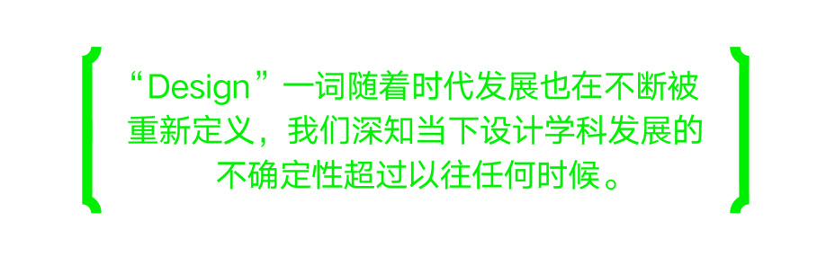 中国美术学院设计艺术周今年是第四届,本届设计周主题是:"Design Being"。"Design"一词随着时代发展也在不断被重新定义,我们深知当下设计学科发展的不确定性超过以往任何时候,我们看到变化已经成为常态,科技让这个时代不断加速,科技不断给我们带来新知的同时,甚至还打破了传统的经验,让人感到迷茫。我们面对数字和科技发展带来的新命题,到底要坚持什么和改变什么?值得每一个人去思考。1400多年前的隋朝的思想家王通说到:“通其变,天下无弊法;执其方,天下无善教”就是要我们通晓事物变化的规律,灵活应对, 天下就不存在有弊端的法道;假设执着于常规教条旧制,天下就不会有好的教化。今天,我们每个人都是时代的探索者,面对新旧迭代、更替、变化的现实常态,更应该“通其变,寻善教”,一起拥抱未来。
