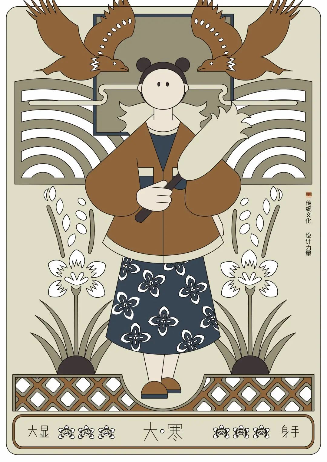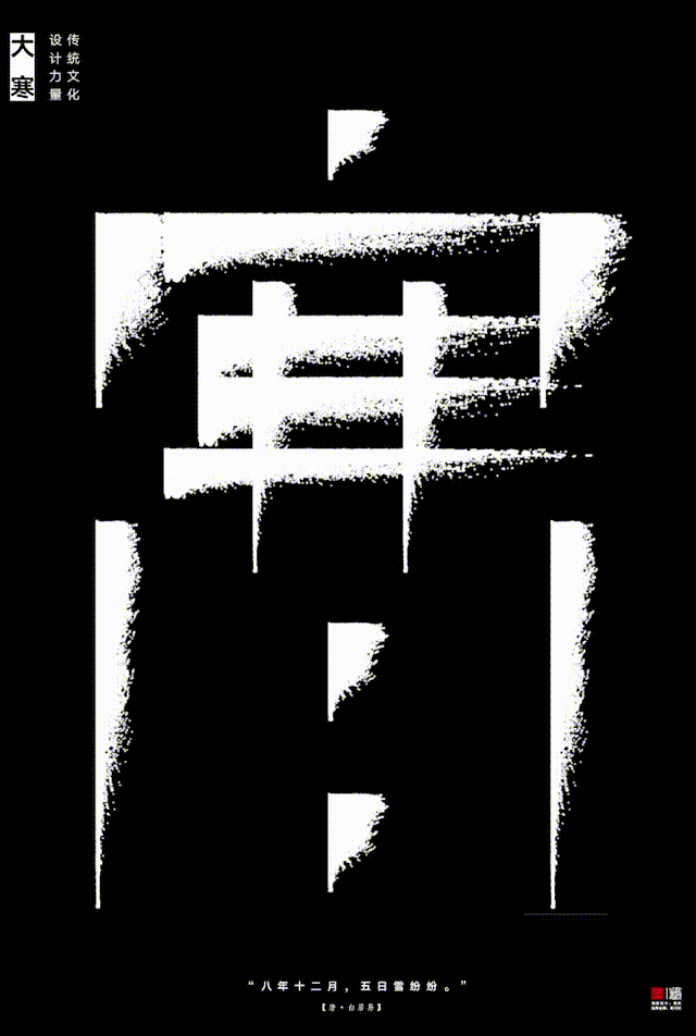 大寒,是二十四节气中的最后一个节气。斗指丑;太阳黄经达300°;于每年公历1月20—21日交节。大寒同小寒一样,也是表示天气寒冷程度的节气,大寒是天气寒冷到极致的意思。根据我国长期以来的气象记录,在北方地区大寒节气是没有小寒冷的;但对于南方大部地区来说,最冷是在大寒节气。当古老的传统文化与极富创造性思维的设计相融合,会碰撞出怎样的火花呢?值此岁末之际,设计艺术学院的师生共同创作了「大寒」系列海报,为寒冬时节增添了艺术气息。